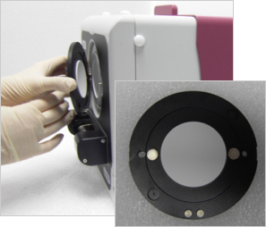 (4) Blank ¿ë¾×(Distilled Water)À» 20 mm pathlength Cell¿¡ ´ã¾Æ Transmittance Sample Cell Holder¿¡ °íÁ¤ÇÑ ÈÄ Blank ÃøÁ¤À» Çϰí, SampleÀ» Cell¿¡ ´ã¾Æ Target ¹× SampleÀ» ÃøÁ¤ ÇÑ´Ù.