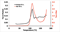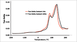 ¿À¸¥ÂÊ ±×¸²Àº ÀνºÅÏÆ® Ä¿ÇÇ»ùÇÃÀ» °¢°¢ 1Hz¿Í 10Hz·Î ºÐ¼® ÇßÀ» ¶§ÀÇ Tan ¥ä °î¼±ÀÌ´Ù. 100¢ªC ºÎ±Ù°ú 180¢ªC ¿¡´Â 2°³ÀÇ À¯¸®ÀüÀ̰¡ º¸ÀÌ¸é¼ Á֯ļö¿¡ µû¸¥ À§»óÂ÷°¡ ³ªÅ¸³ª´Â °ÍÀ» È®ÀÎÇÒ ¼ö ÀÖ¾ú´Ù. ÀνºÅÏÆ® Ä¿ÇÇ´Â ±âº»ÀûÀ¸·Î ¿©·¯°¡Áö ¹°ÁúÀÌ È¥ÇÕµÈ È¥ÇÕ¹°ÁúÀÌ´Ù. ÀÌ¿Í °°ÀÌ Material PocketÀº È¥ÇÕ¹°ÀÇ ºÐ¼®¿¡¼µµ °¢°¢ °³º°ÀÇ Peak(Tg µî)¸¦ ã¾Æ³»´Â °ÍÀÌ °¡´ÉÇÏ´Ù.