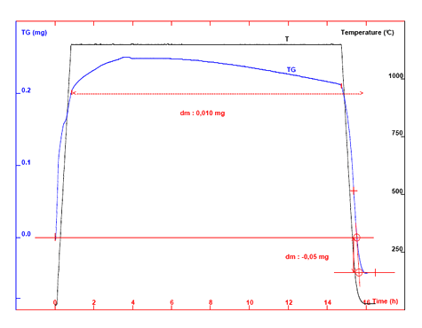 1000¡É ±îÁö ½Â¿ÂµÇ´Â 1½Ã°£ µ¿¾È 20ugÀÇ ¹«°Ô Áõ°¡ °¡ ÀϾÀ¸¸ç µî¿Â»óÅ¿¡¼ 14½Ã°£µ¿¾È 10ugÀÇ ¹«°Ô°¡ °¨¼ÒµÇ´Â °ÍÀ» È®ÀÎ ÇÒ ¼ö ÀÖ¾ú´Ù. ½ÇÇè µ¥ÀÌÅ͸¦ ÅëÇØ Silicon CarbideÀÇ °æ¿ì 1000¡É¿¡¼ ¿¾ÈÁ¤¼ºÀÌ ¶Ù¾î³²À» È®ÀÎÇÒ ¼ö ÀÖ¾ú´Ù.