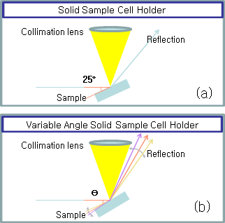 ±×¸² 2. °íÁ¤ °¢µµº° Solid Sample Cell Holder (a)¿Í Variable Angle Solid Sample Cell Holder (b)ÀÇ ºñ±³ ¸ð½Äµµ