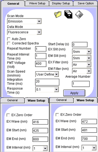 Wave Scan mode¿¡¼ LED Çü±¤Ã¼ ºÐ¸»ÀÇ Èí±¤, ¹ß±¤ ½ºÆåÆ®·³À» È®ÀÎÇÑ´Ù. |