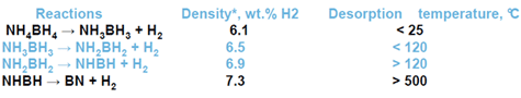 Ammonia boraneÀÇ ¼ö¼ÒÅ»ÂøÀº ¾Æ·¡¿Í °°Àº 4°¡Áö ¿¬¼Ó ¹ÝÀÀ´Ü°è·Î ÁøÇàÀÌ µÈ´Ù. ù¹øÂ°¿Í ³×¹øÂ° ¹ÝÀÀÀº °¢°¢ ³·Àº ¿Âµµ¿Í ³ôÀº ¿Âµµ¿¡¼ ¹ß»ýÇÏ´Â ¹ÝÀÀÀ̱⠶§¹®¿¡ ¼ö¼ÒÀúÀå ¸ÞÄ¿´ÏÁò¿¡¼ Áß¿äÇÑ ¹ÝÀÀ ´Ü°è´Â ¾Æ´Ï´Ù. 4´Ü°è ¹ÝÀÀ Áß¿¡ ¼ö¼ÒÀúÀå¿¡ ´ëÇØ Èï¹Ì·Î¿î ¹ÝÀÀÀº ÀûÀýÇÑ ¿Âµµ¿¡¼ ¹ß»ýÀÌ µÇ´Â µÎ¹øÂ°¿Í ¼¼¹øÂ°ÀÇ Áß°£ ¹ÝÀÀµéÀÌ´Ù. ¼ö¼Ò ÈíÅ»Âø¿¡ ´ëÇÑ ÃÖ±ÙÀÇ ¿¬±¸¸ñÀûÀº µÎ¹øÂ°¿Í ¼¼¹øÂ° ¹ÝÀÀÀ» ºÐ¸®ÇÏ´Â °ÍÀ̸ç, ±×¿Í µ¿½Ã¿¡ °¢°¢ÀÇ ¹ÝÀÀ¿¡ ´ëÇÑ ºÎ¹ÝÀÀµéÀ» °üÂûÇÏ´Â °ÍÀÌ´Ù.