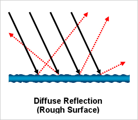 °íü ½Ã·á¿¡ ºûÀ» ÂÉ¿©ÁÖ¸é ½Ã·áÀÇ Ç¥¸é¿¡¼´Â ºûÀÇ ¹Ý»ç°¡ ÀϾ´Âµ¥, À̴ ǥ¸éÀÇ »óÅ¿¡ µû¶ó 2°¡ÁöÀÇ ÇüÅ·Π³ªÅ¸³³´Ï´Ù. °Å¿ï°ú °°Àº ¸Å²ô·¯¿î Ç¥¸é¿¡¼ ³ªÅ¸³ª´Â Á¤¹Ý»ç (°Å¿ï ¹Ý»ç ; Specular Reflection)¿Í ¿À¸¥ÂÊ ±×¸²°ú °°ÀÌ °ÅÄ£ Ç¥¸é¿¡¼ ³ªÅ¸³ª´Â ³¹Ý»ç (È®»ê ¹Ý»ç ; Diffuse Reflection)ÀÔ´Ï´Ù.