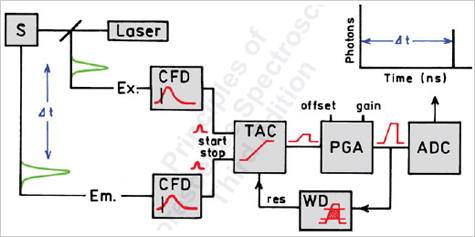 TCSPC¿¡¼´Â ÀÌ·¯ÇÑ ÃøÁ¤ÀÌ °¡´ÉÄÉ Çϱâ À§ÇØ ¿©·¯ °¡Áö ÀüÀÚ ±â±âµéÀÌ Á¶ÇյȴÙ.