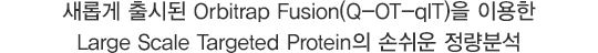 Purpose: Large Scale Targeted ProteinÀÇ º¸´Ù Á¤È®ÇÑ Á¤·®ºÐ¼®À» Çϱâ À§Çؼ Orbitrap Fusion™ Tribrid™ Áú·®ºÐ¼®±â¸¦ ÀÌ¿ëÇÏ¿© ³ôÀº °¨µµ¿Í ³ôÀº ¼±ÅüºÀ» Á¦°øÇÏ´Â Data Independent Acquisition(DIA)ºÐ¼®¹ýÀ» °³¹ßÇϰíÀÚ ÇÑ´Ù.
