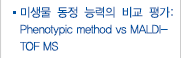 Objective: µ¿Á¤ÀÌ ¾î·Á¿î ÀÓ»ó ½Ã·á¿¡¼ ±âÁ¸ phenotypic method¿Í MALDI-TOF MSÀÇ µ¿Á¤ ´É·ÂÀ» ºñ±³ÇÔ°ú µ¿½Ã¿¡ VITEK MS, Bruker Biotyper MSÀÇ °¢ MALDI-TOF MS¿¡¼ÀÇ ¹Ì»ý¹° µ¿Á¤ ´É·ÂÀ» ºñ±³ÇÏ¿´´Ù. |
