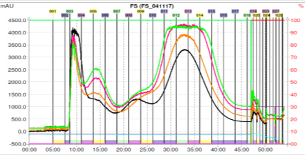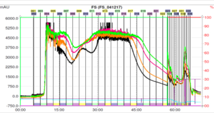 Fig.1 ~ 3Àº °¢°¢ 1g, 3g, 2.85g injection ÇÏ¿© Á¤Á¦ÇÑ °á°úÀ̸ç ÀçÇö¼º ÀÖ´Â °á°ú·Î(target compoundÀÇ ºÐȹ±¸°£ÀÌ °ÅÀÇ °°°Ô ºÐ¸®µÇ¾úÀ½À» º¼ ¼ö ÀÖ´Ù.) HPLC·Î´Â ºÐ¸®Çϱ⠾î·Á¿ü´ø ¹°ÁúÀ» ´ë·®À¸·Î ºÐ¸®ÇØ ³¾ ¼ö ÀÖ¾ú´Ù.