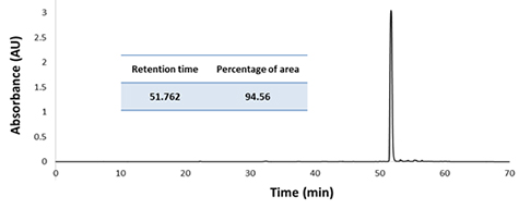 3) HPLC analysis of the fraction 13 obtained from the 1st run (the purest peak from the 1st run)